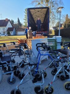Zum wiederholten Mal hat das Team von „Werke statt Worte“ unter der Leitung von Rudolph Karg viele Hilfsgüter beim Caritas-Altenservicezentrum in Hofheim abgeholt. Diese umfassen unter anderem ausgediente Pflegebetten, Rollstühle und Nachtkästchen, die nicht mehr in der Altenhilfe-Einrichtung verwendet werden.